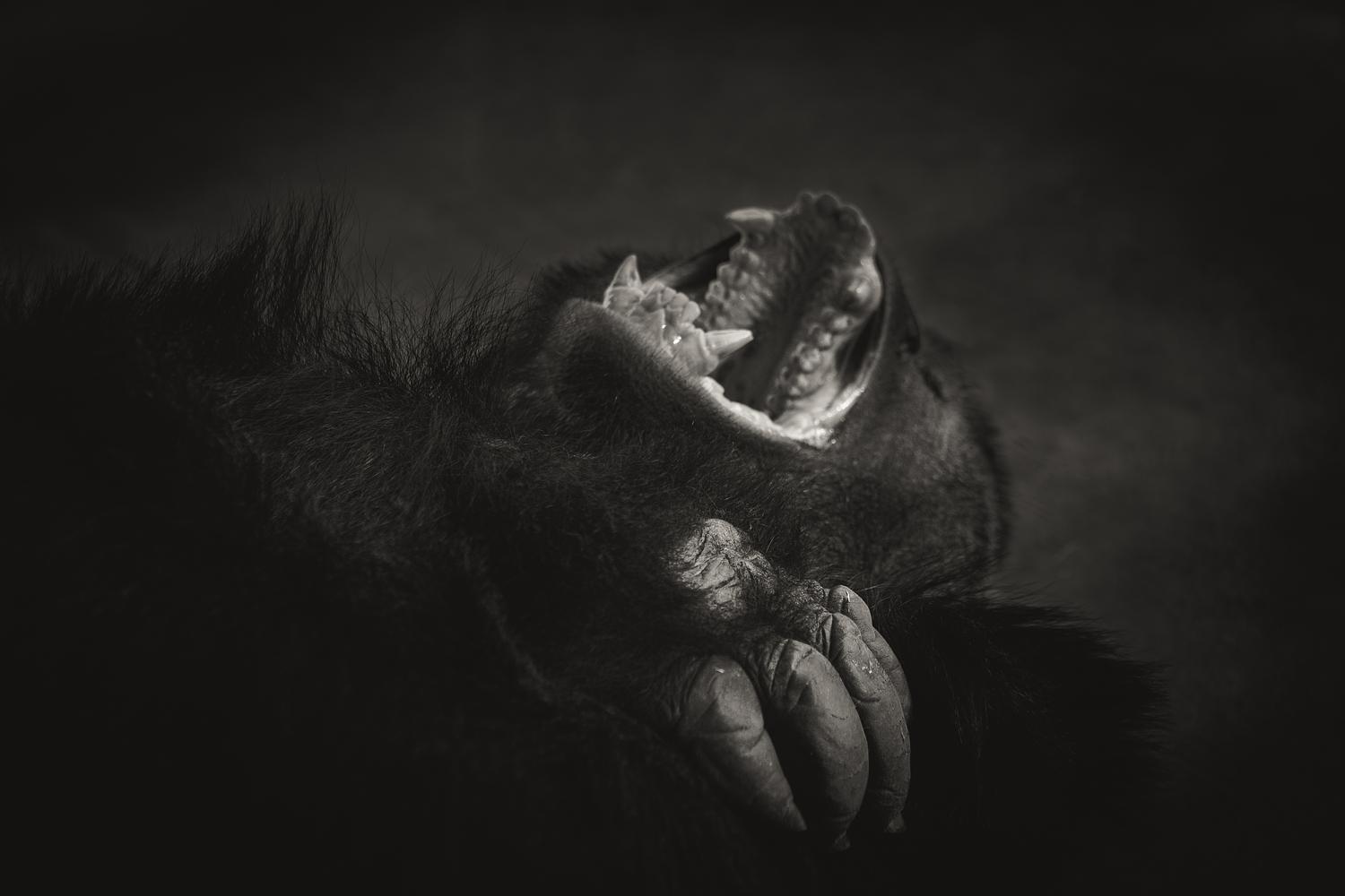 Yawning silver back gorilla at the South Carolina Riverbanks Zoo.